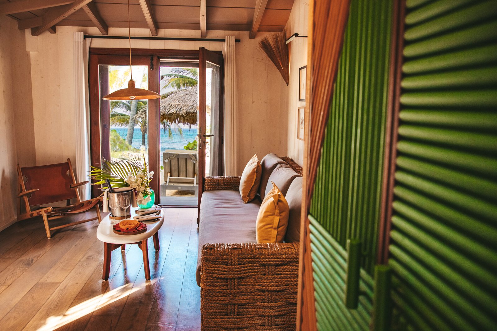 Les chambres et suites offrent une vue imprenable sur l’océan ou les jardins tropicaux, avec terrasse privée, mobilier artisanal, linge bio, machine Nespresso, minibar, et salle de bain avec produits de soin éco-labellisés. Certaines villas disposent de piscine ou bain à remous privé.