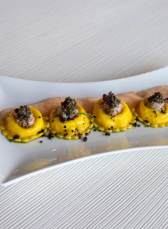 On y déguste des plats élégants et légers : poissons frais, risotto crémeux, carpaccios, salades ensoleillées et desserts aux fruits exotiques.
