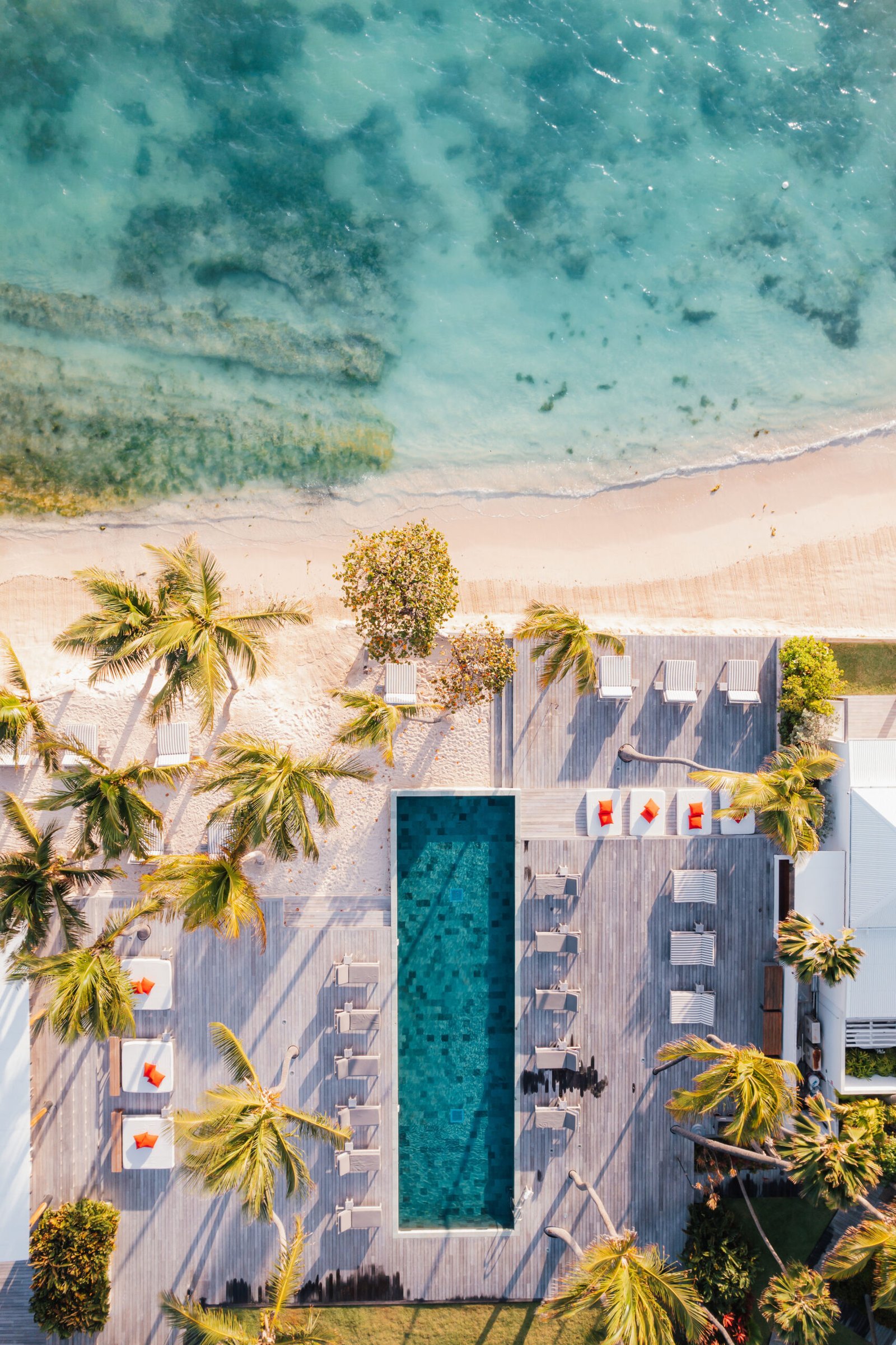Le Sereno, hôtel 5 étoiles emblématique de Grand-Cul-de-Sac, offre une vision contemporaine du luxe caribéen. Dessiné par le célèbre designer Christian Liaigre, ce boutique-hôtel en bord de lagon conjugue lignes pures, matières nobles et raffinement discret dans une ambiance apaisante et confidentielle.