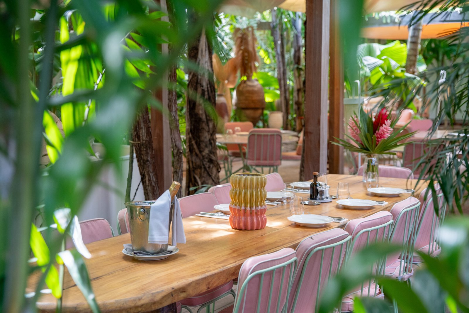 Le restaurant, installé au cœur du jardin, propose une cuisine inventive inspirée des saveurs locales et internationales. Ambiance chic et détendue, décor végétal et lumière tamisée pour des moments gourmands et conviviaux.