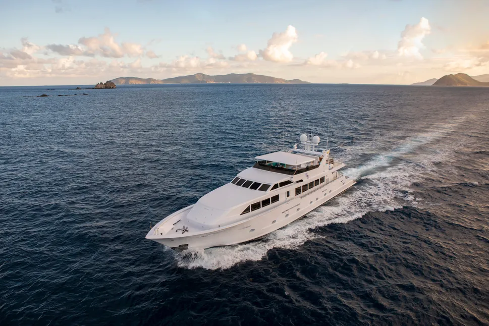 Le Broward 100’ est un yacht d’exception, symbole du luxe et du raffinement américain. Avec ses vastes espaces et son design classique revisité, il offre une expérience de croisière incomparable autour de Saint-Barthélemy, Saint-Martin ou Anguilla.