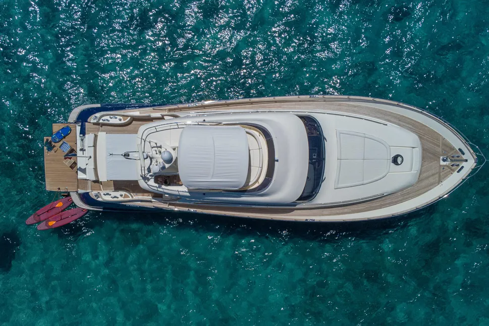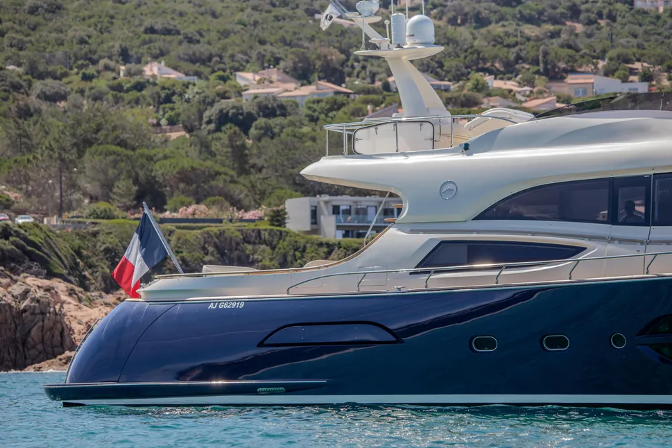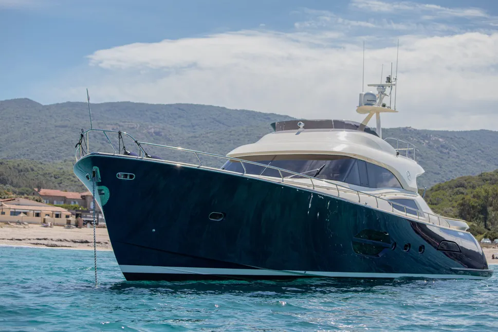 Ses espaces intérieurs lumineux, son flybridge panoramique et ses zones extérieures spacieuses offrent une expérience de navigation exceptionnelle, idéale pour des journées relaxantes ou des croisières privées haut de gamme.