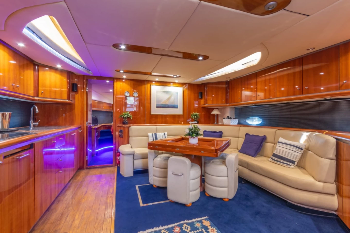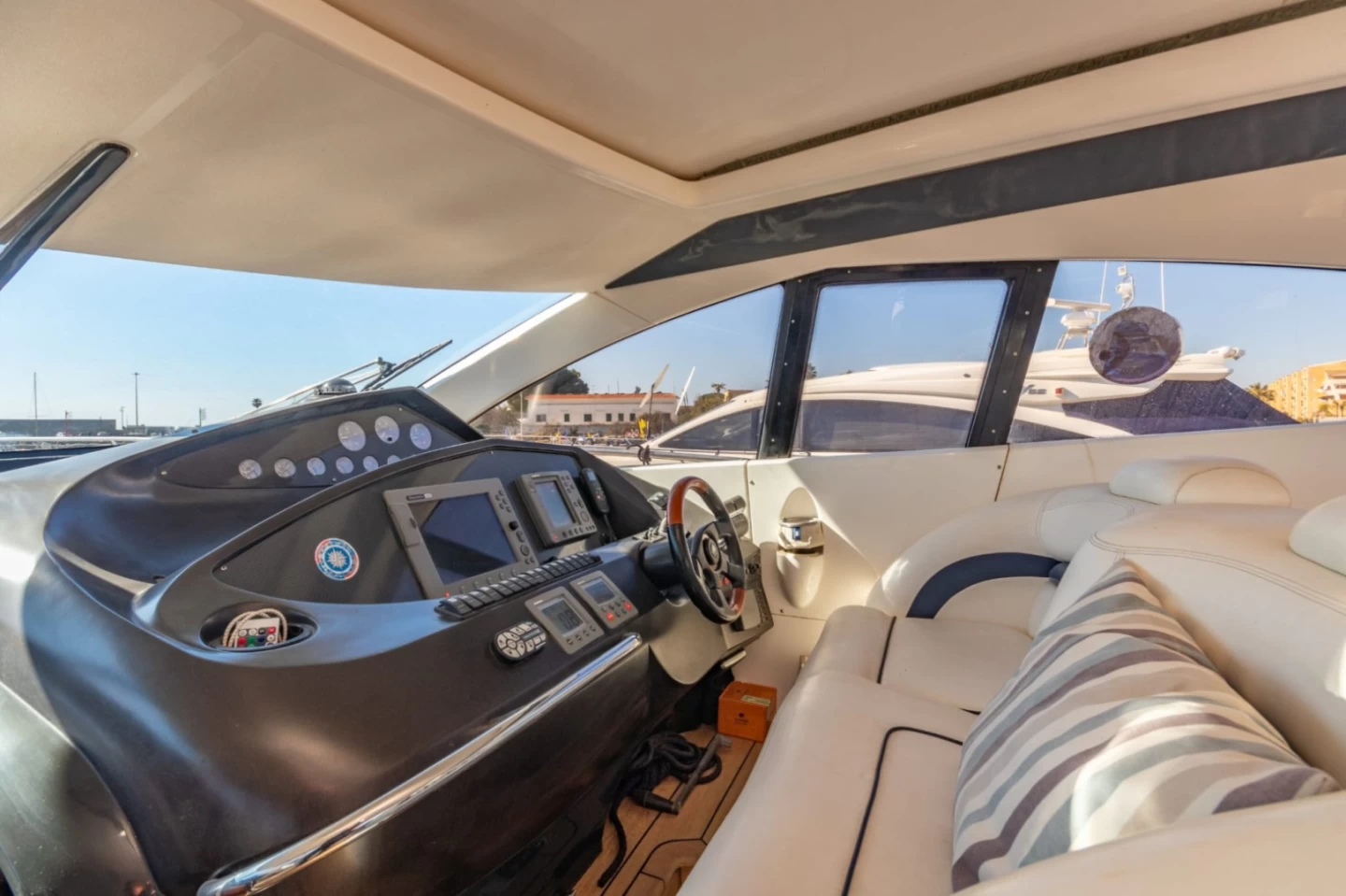 Son pont spacieux, son flybridge panoramique et ses espaces intérieurs élégants en font un choix idéal pour des journées détente, des croisières haut de gamme ou des événements privés exclusifs.